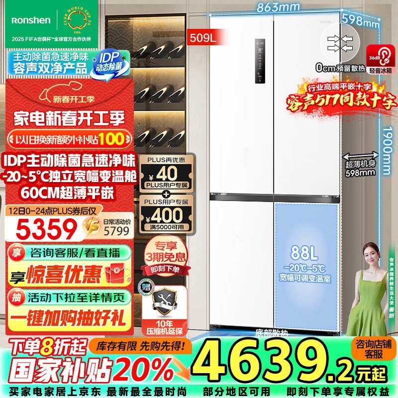 容声双净平嵌系列十字冰箱 3897元到手