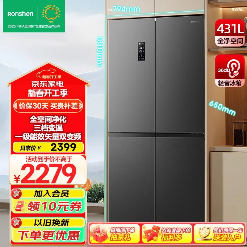 容声431升对开门冰箱只要1600出头