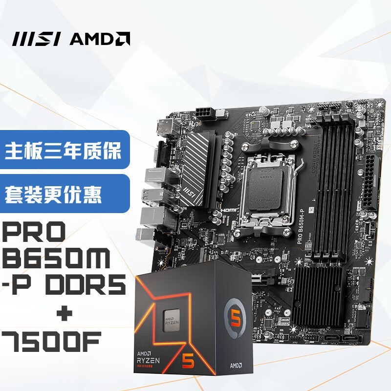 微星B650M-P+主板搭配AMD R5 7500F处理器的电脑套装仅售1689元!