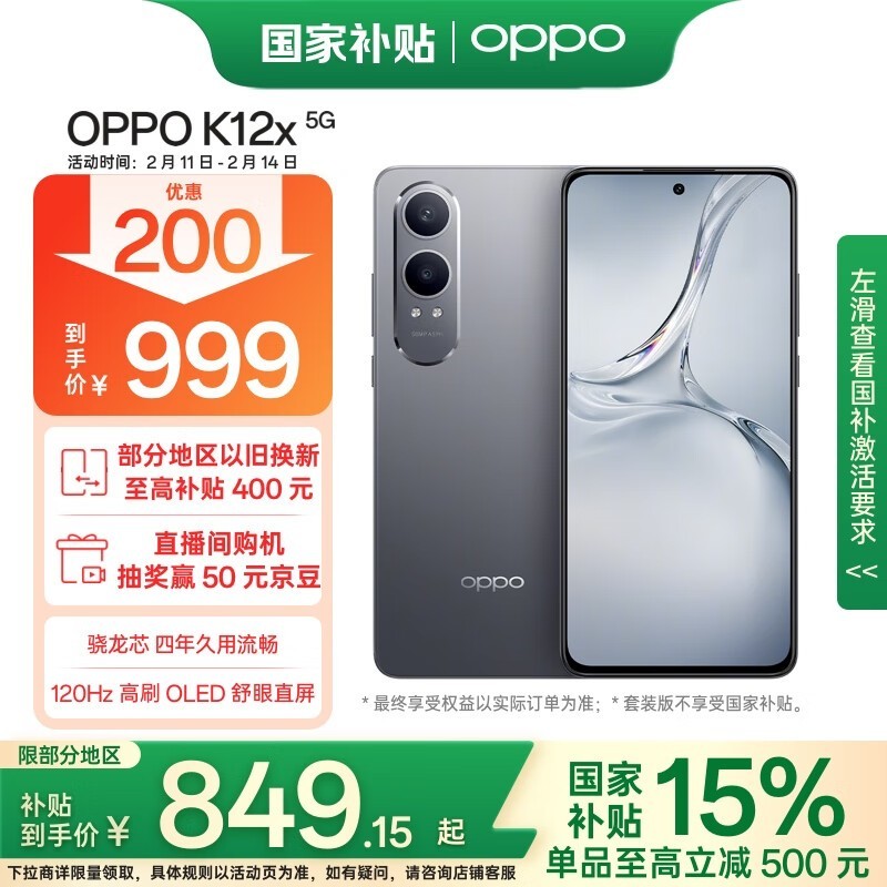 OPPO K12x 5G手机849元入手
