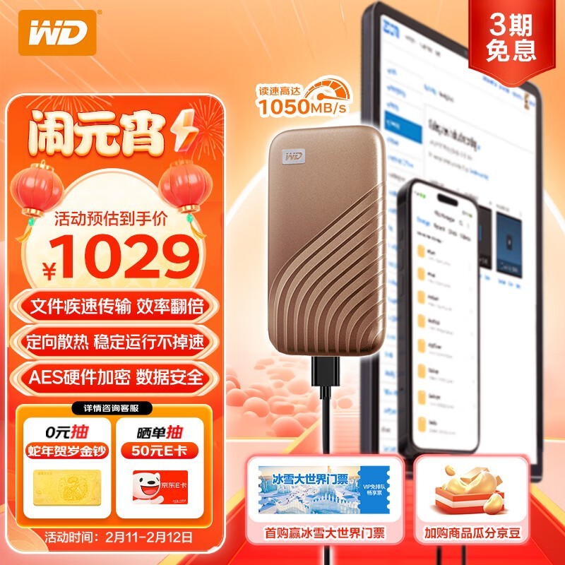 限时优惠!西部数据(WD)2TB Type-C固态移动硬盘到手价989元