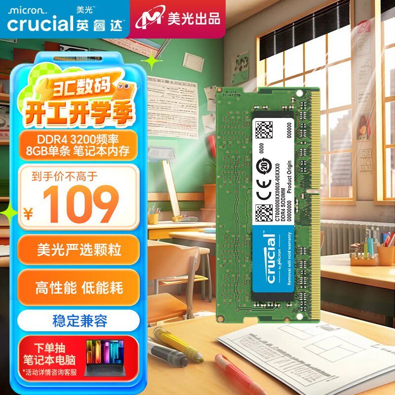 Crucial 8GB笔记本内存条,原价129元,现仅售109元!