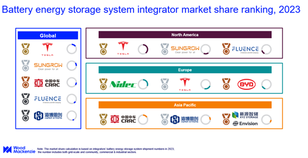 就算放到全世界来看也一直在涨,美国工商业储能市场更是增长超过 7 倍,而2023 年光中国的新增装机量就占全球 46% 。