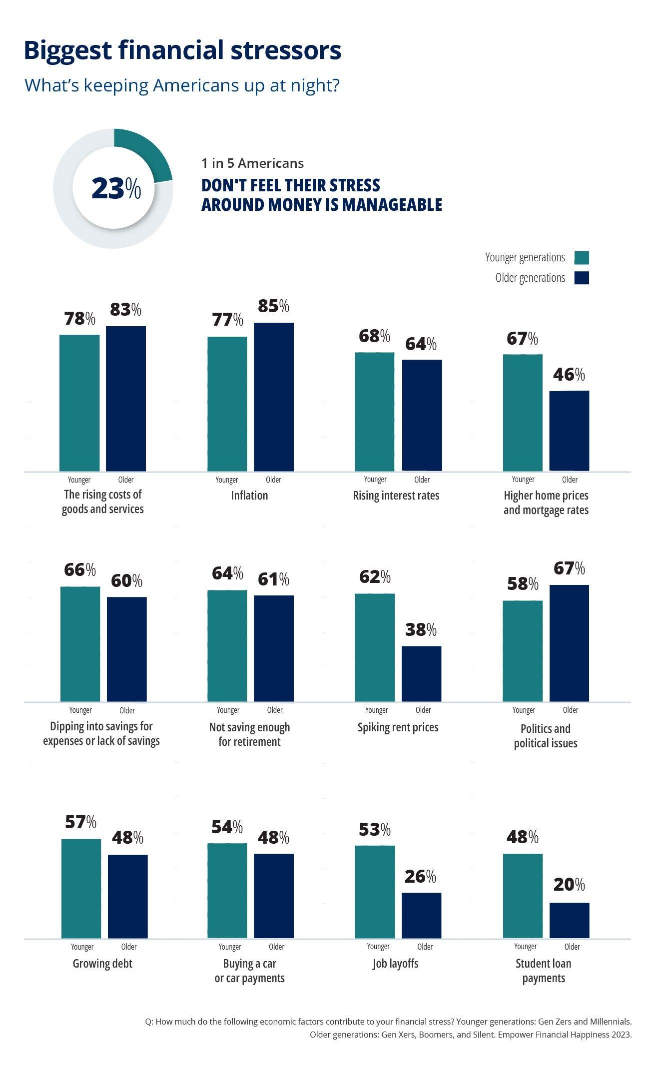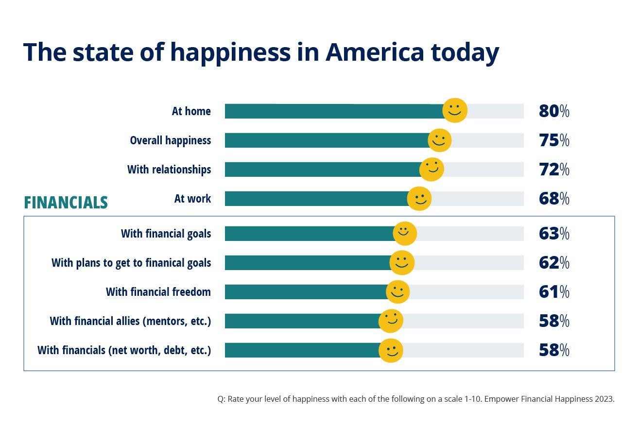 大多数人(67%)在通往幸福的道路上仍有障碍,73%的美国人正经历着经济压力。