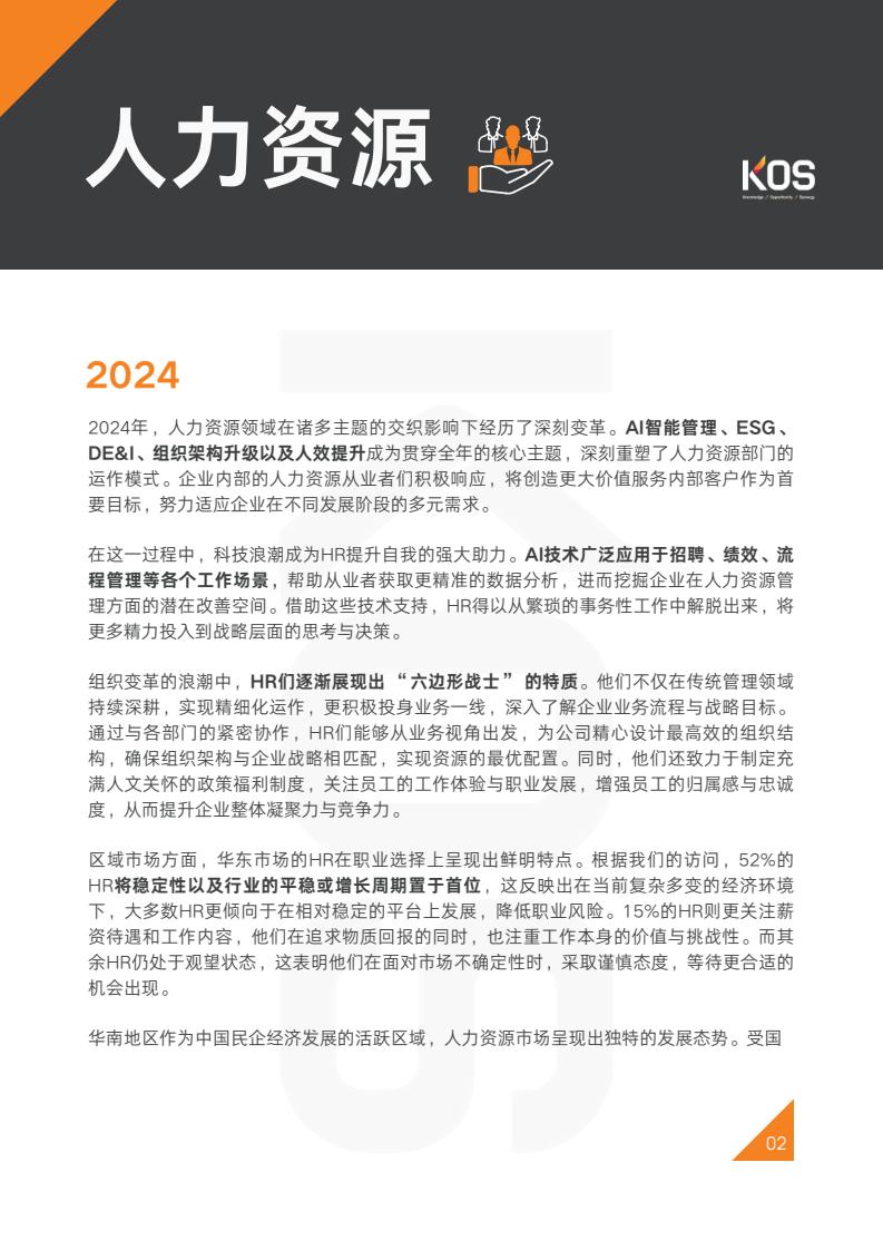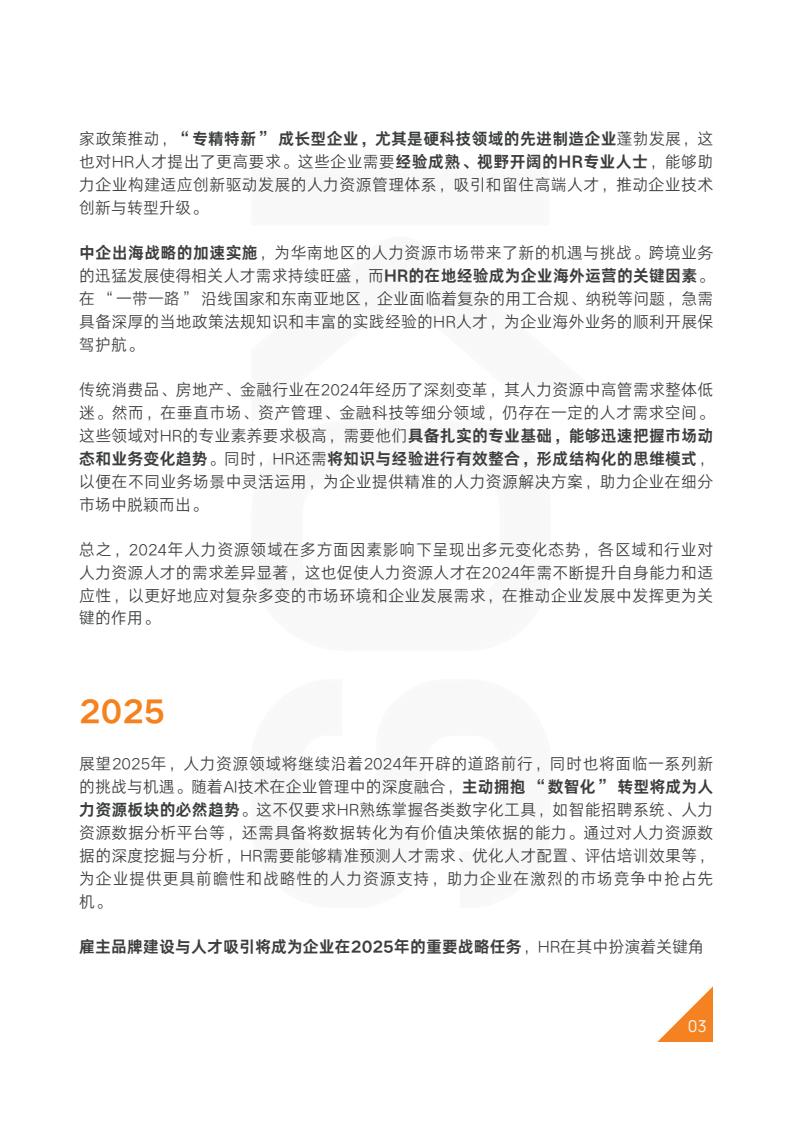 与此同时,随着企业变革发展,人力资源专家类岗位同样重要,如薪酬绩效、组织发展、SSC、HRIS等岗位在企业精细化管理和数字化转型进程中,将继续发挥不可或缺的专业支持作用,其需求也将保持强劲态势。
