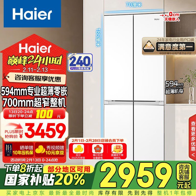 海尔418升薄零距离自由嵌入式冰箱,限时优惠3699元