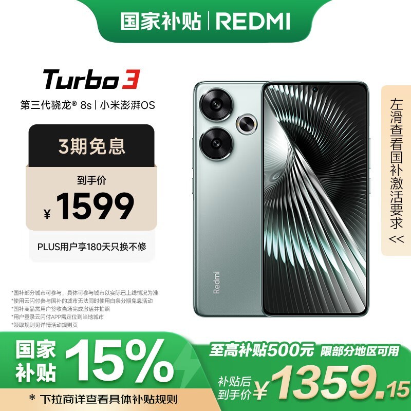 红米 Turbo 3 5G手机京东秒杀价1318元 骁龙8sGen3芯片性价比超高