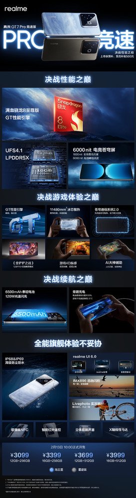 真我GT 7 Pro竞速版发布 骁龙8至尊+6500mAh 3099起售