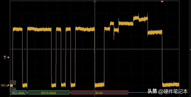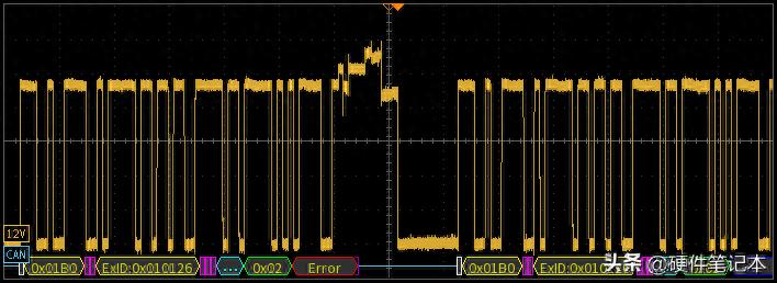 正常情况来说,总线上的显性不应该>5bits=10us。那么用示波器设置>11us的脉宽触发模式就很容易定位错误帧的位置,不一定要用解码示波器。