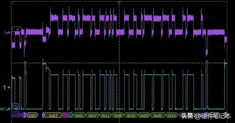 再看一个比较真实的车上波形,CAN网络上大于4个节点: