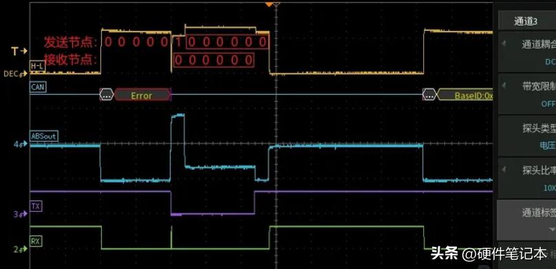 结合已知ID是哪个节点发的先验信息,逐个拔掉非终端节点,示波器观察“主动错误标志”,就能模糊定位错误源头;