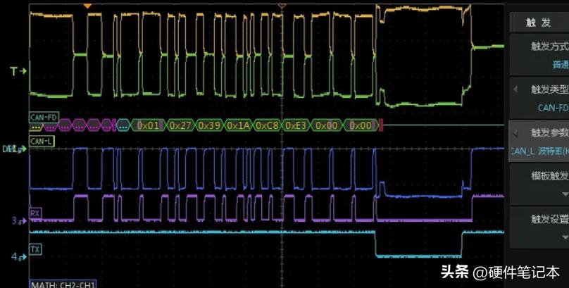 补充知识:CAN-FD网络各个节点的采样点必须完全相同,高速率导致对时序敏感很多,这一点与CAN网络容许一个范围显著不同。上边这一帧的BRS位怎么读错的呢?再一次违反直觉:CAN-FD的采样点影响发送节点的驱动波形!用示波器可以轻松量出FD的采样点位置。