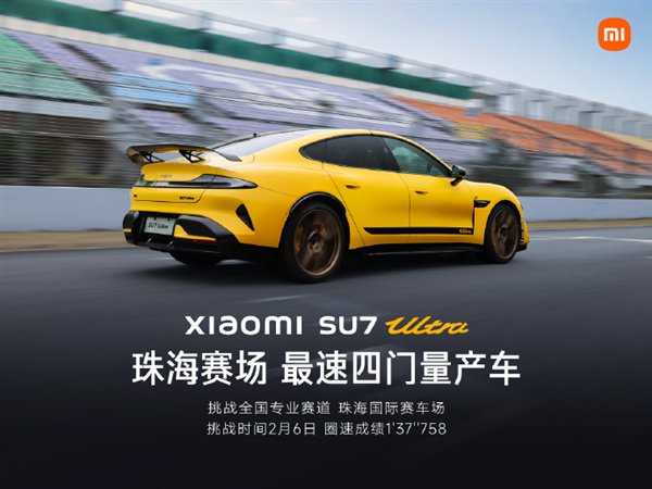 快科技2月13日消息,小米SU7 Ultra在珠海国际赛车场的全国专业赛道挑战第二站中表现出色,以1分37秒758的圈速成绩再次荣获最速四门量产车称号。