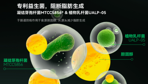 益生菌组合:LAIFE「乐轻肝」内含的专利益生菌凝结芽孢杆菌MTCC 5856与植物乳杆菌UALP-05等。临床研究表明,服用含有这些益生菌的产品四周后,受试者肝脏脂肪含量平均降低了 23%。它们能够在肠道内发挥作用,分解多余胆固醇,阻断其进入肝脏的途径,从而减轻肝脏处理脂质的负担,为肝脏健康筑起一道防御屏障。