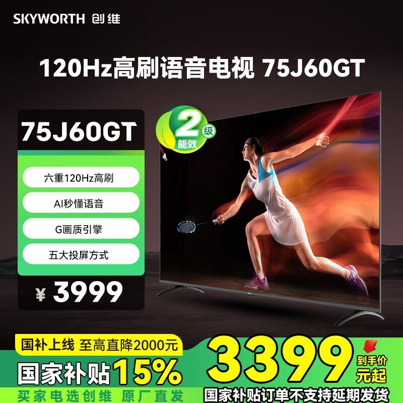 2024年新上市!创维75J60GT:健康护眼4K超高清电视,120Hz流畅体验,仅3999元起
