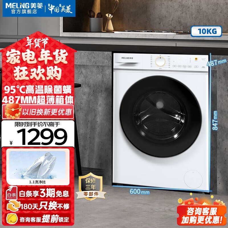 美菱超薄大容量变频洗衣机S1AG100B:节能省空间,便捷高效生活助手