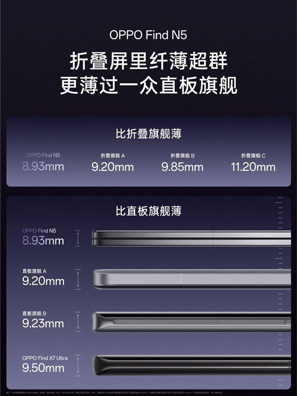 这是折叠屏手机推出以来,第一次将机身厚度压缩到9mm以内,Find N5将成为史上最薄折叠屏。