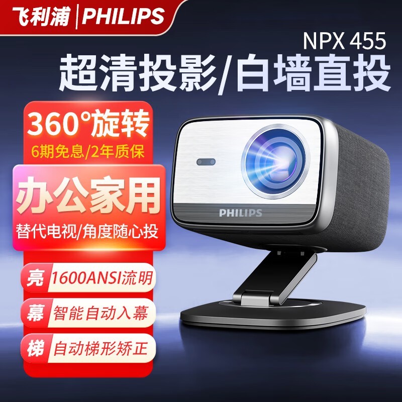 飞利浦NeoPix 455投影仪:全高清大屏,1600lm亮度,智能变焦,沉浸式音效的家居/办公视觉新宠