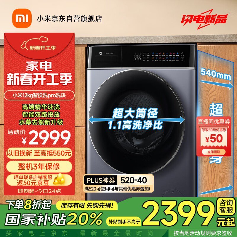 米家智能滚筒洗衣机XHQG120MJ303:大容量、高效洗净+烘干,轻松享受品质生活