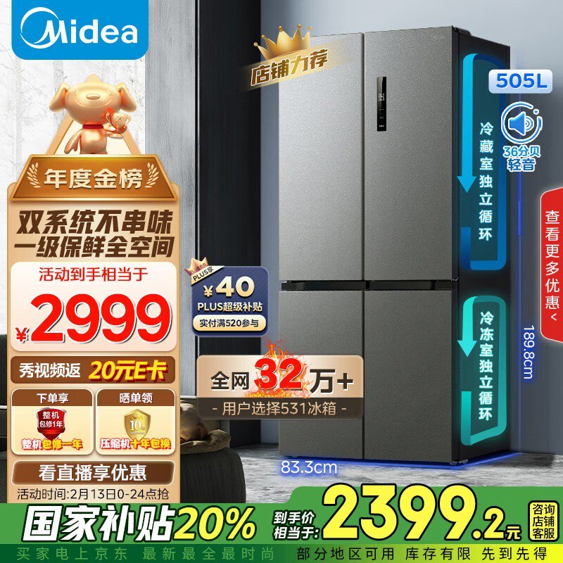 美的MR-531WSPZE对开门冰箱2236元入手