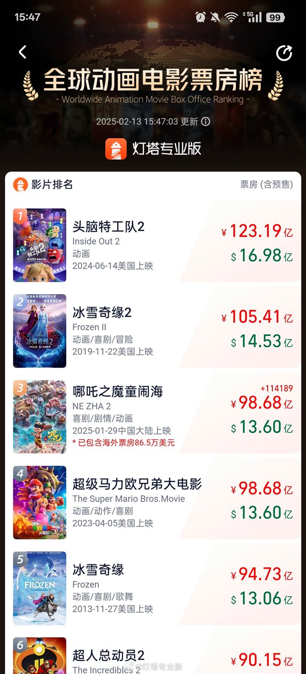 如果最终预测成真,那么《哪吒之魔童闹海》将成为动画电影全球第一票房,甚至很长一段时间都将无人能敌。