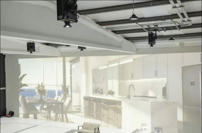 考虑到展厅实际大小以及其高达六米的挑高,Lifesize Plans特地选择了11台松下单芯片DLP™投影机PT-FRZ99C(中国型号),以高达10,000流明的亮度为客户带来震撼的沉浸式体验,仿佛置身于真实比例的房屋中。这些投影机将精准展示建筑师绘制的真实比例建筑平面图。