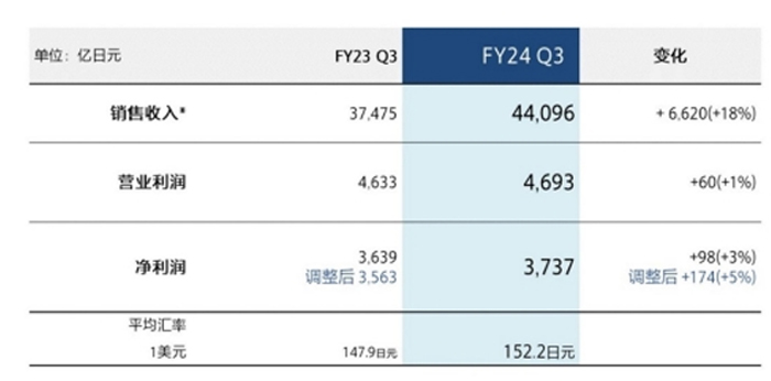 2024财年第三季度,索尼集团销售收入达到44,096亿日元,同比增长18%;营业利润达4,693亿日元,净利润为3,737亿日元,均同比微增。本季度,索尼集团各项业务维持稳健运营,尤其是游戏及网络服务和音乐业务表现不俗,前者主要得益于非第一方游戏软件销售增长,硬件销售增加,后者主要得益于录制音乐、音乐发行的流媒体服务收入增加和汇率的积极影响等等。索尼上调了对2024财年全年的营业利润目标的预判,至13,350亿日元。