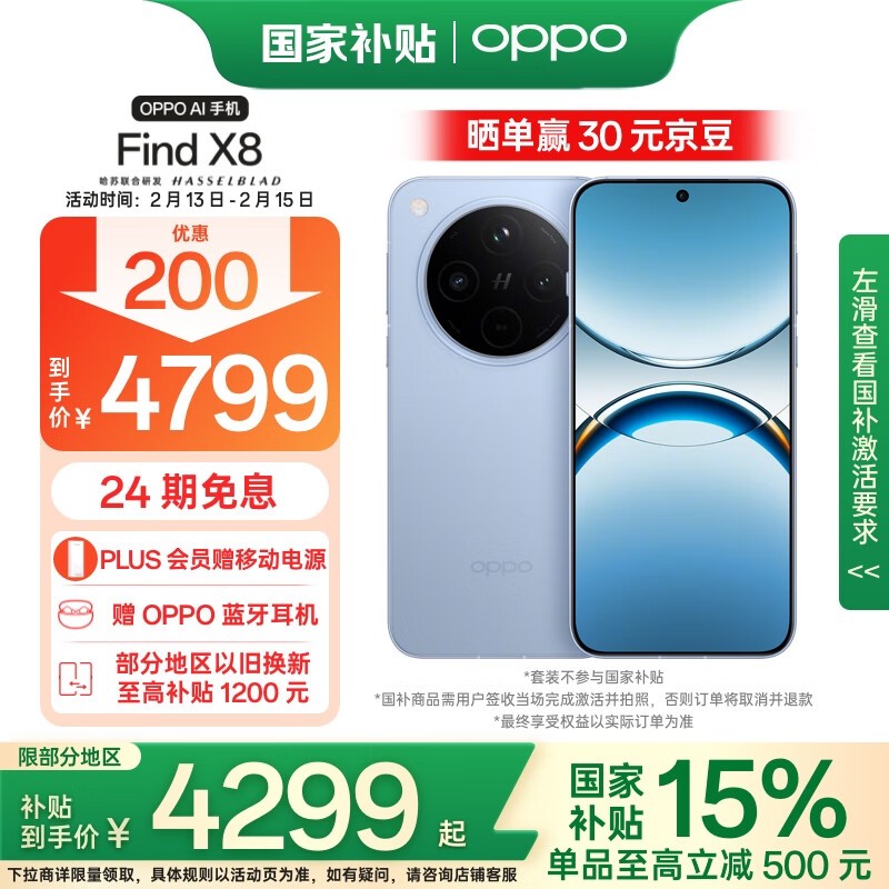 OPPO Find X8 5G手机限时优惠!4205.01入手国补15% 30元京豆等你拿!