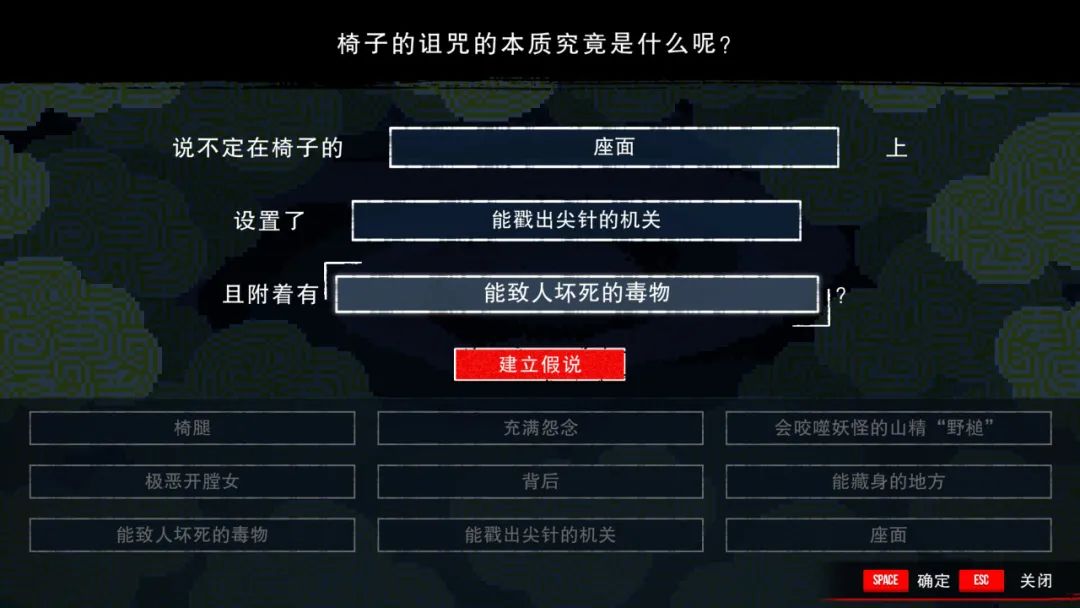 有时候会觉得是不是过于本地化了但另一方面,《都市传说解体中心》的信息收集过程又显得过于简单了,无论是“现场调查”还是“网络调查”,本着“捡到篮子里的都是菜”的精神,只要当玩家和所有可互动目标全部互动一遍,线索总数搜集完毕,便会自动开启脑内推理环节。