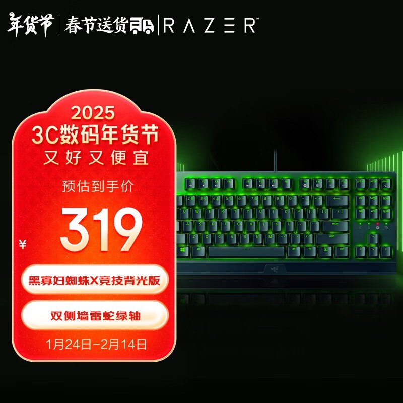 雷蛇黑寡妇蜘蛛X竞技版游戏键盘只要249元