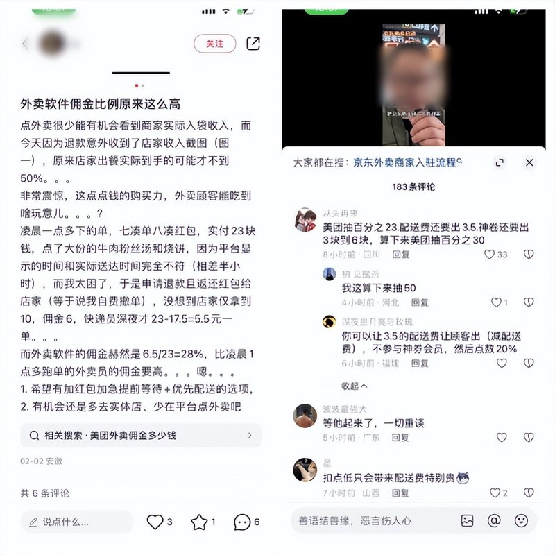 但从不同社交平台的网友留言来看,恐怕其实际佣金并不止如此。当然,这也可能是因为商家参与了满减、红包等活动,商家的部分收入被这些成本所挤压了。