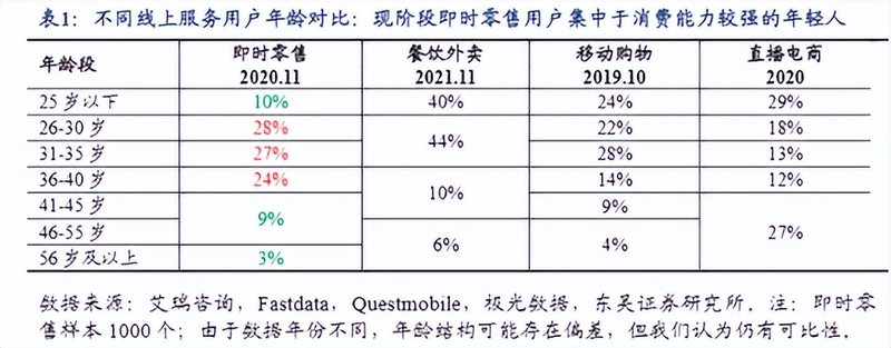 根据Questmobile数据,即时零售的用户年龄大多在26-40岁,年龄段分布均匀,消费力较强,以高线城市为主。此外,和其他渠道相比,即时零售订单的时段、渠道分布更均衡,也能在一定程度上降低运营成本。