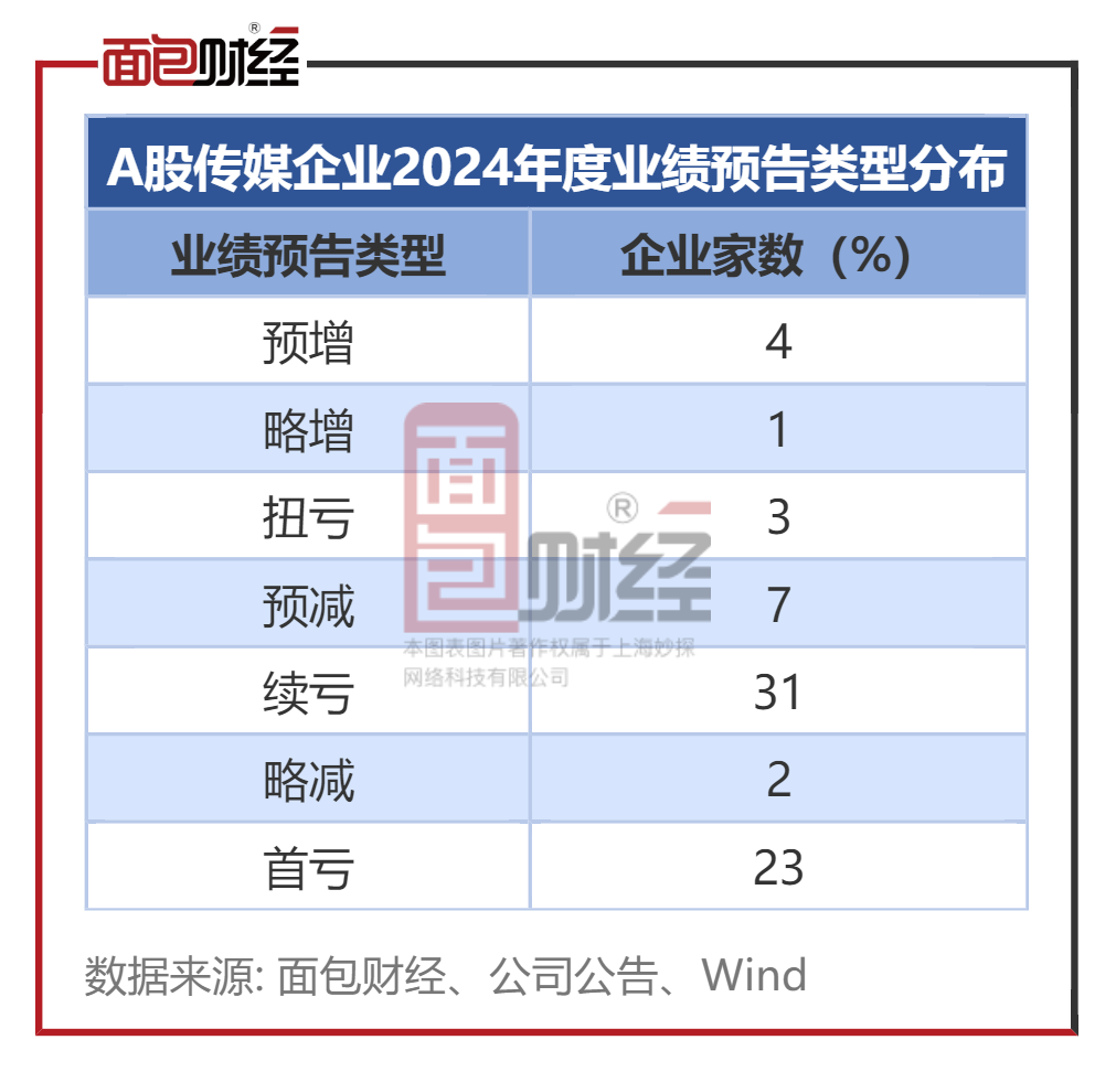 根据申万一级行业分类,截至2025年2月12日收盘,共有71家传媒行业A股上市公司披露2024年业绩预告。