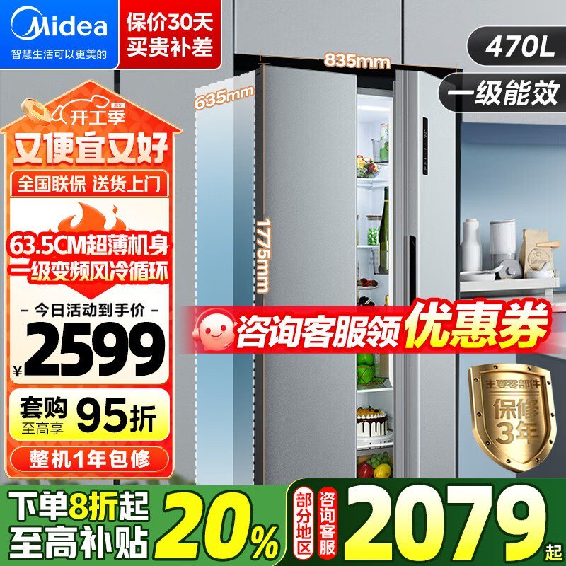美的 BCD-468WKPZM(E)一级能效节能冰箱,智能科技节能环保