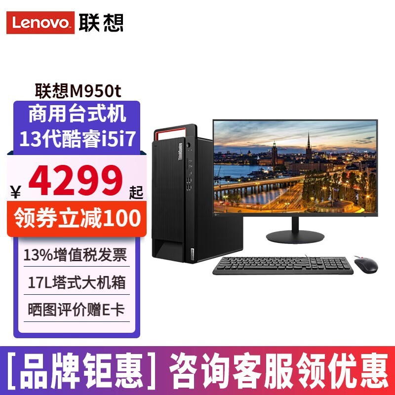 联想十核商务台式机:M950t,高性能图形制图利器,23.8英寸高清屏幕仅售5699元