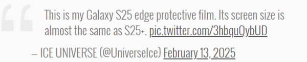 曝三星S25 Edge屏幕与S25+几乎相同 新机有望4月发布