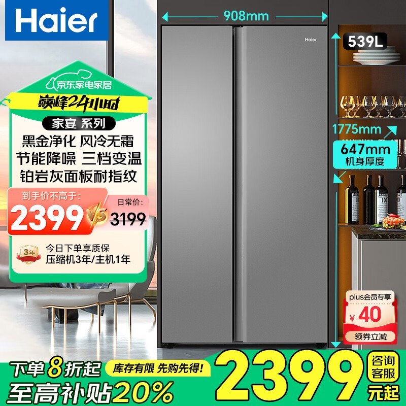 海尔 BCD-539WGHSSEDH9 电冰箱 折后价格仅需2329元