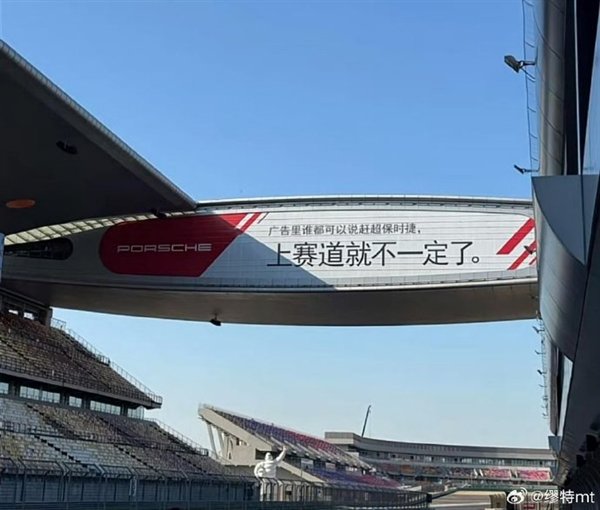 此前,保时捷曾在上海国际赛车场打广告称:“广告里谁都可以说赶超保时捷,上赛道就不一定了”。