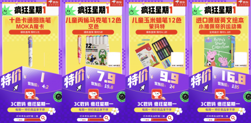 文具图书方面,魔卡十色卡通圆珠笔享限时1元秒杀价,抢到就是赚到。空色儿童丙烯马克笔12色限时5折,到手价7.9元。蒙玛特儿童玉米蜡笔12色限时4折,到手价9.9元。原价135元的《小猪佩奇的运动集》进口原版英文绘本6册装限时降至16.8元,非常划算。