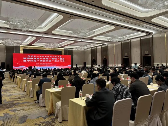 本次大会以“四链融合、两国双园、合作共赢”为主题,旨在搭建食品产业供需对接平台,推动产业链、供应链、创新链、资金链深度融合,助力福清市食品产业高质量发展,同时深化中印尼“两国双园”合作,共谋发展新篇章。大会现场气氛热烈,众多企业代表、行业专家学者围绕食品产业的前沿技术、市场趋势及合作机遇展开深入探讨。