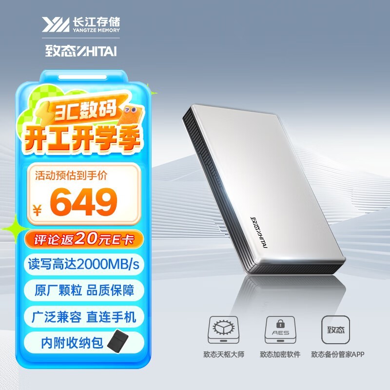 致态长江存储1TB USB 3.2移动固态硬盘609元