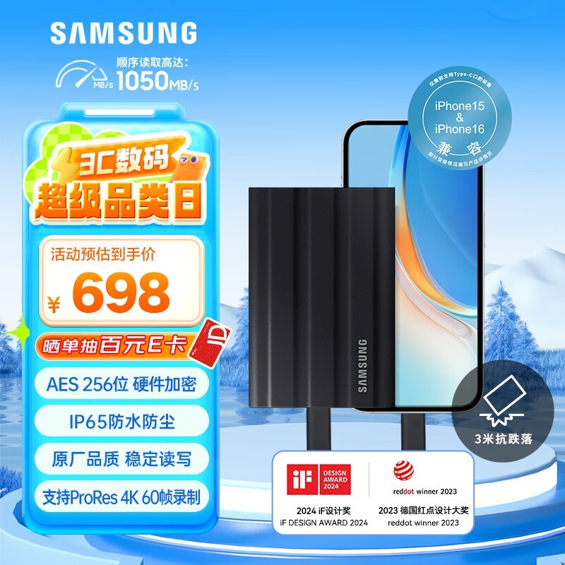 可装进口袋的1TB移动硬盘 三星T7 Shield到手价659元