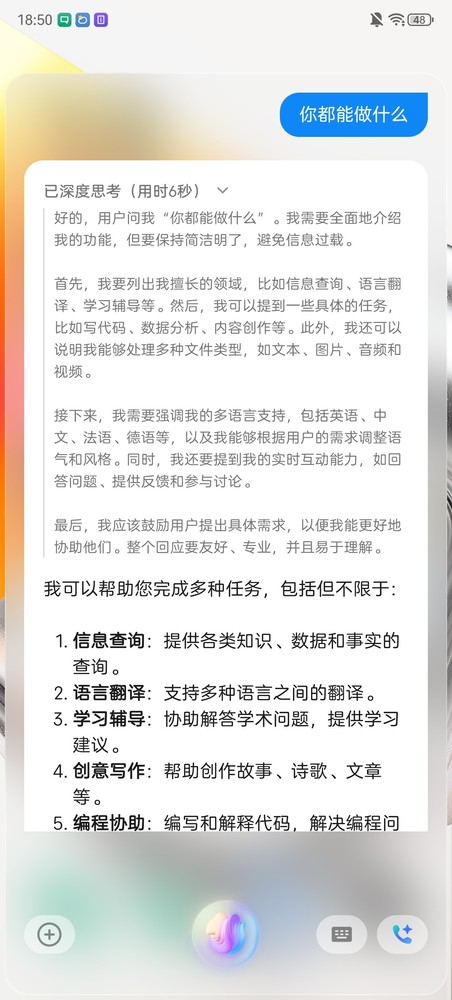 “星辰大模型和DeepSeek-R1是共同协作的关系,构筑成星云AI强大的能力。”倪飞举例道:“DeepSeek具备推理能力以及数据处理能力,能够高效处理复杂的自然语言任务。而星辰AI大模型已经调教比较成熟,在AI语音交互、AI影像、AI翻译、智能生产力,提供丰富的AI体验。二者在星云AI深度融合,更好地为用户提供功能价值、效率价值,以及情绪价值。”