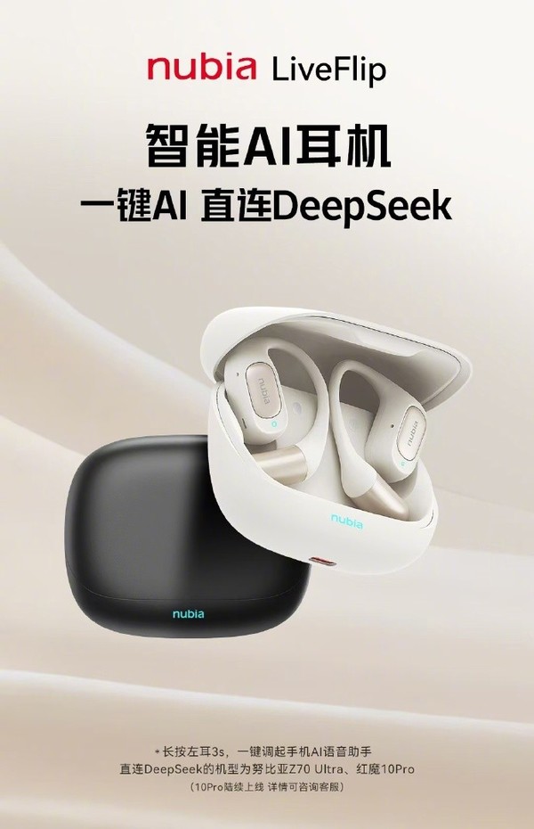 努比亚AI耳机就是这一战略的先行者。它内置的AI语音助手功能为用户提供了更多便捷的操作选择,提升了智能化使用的便利性。未来一旦引入DeepSeek,也能为生态互联提供强有力的支持。