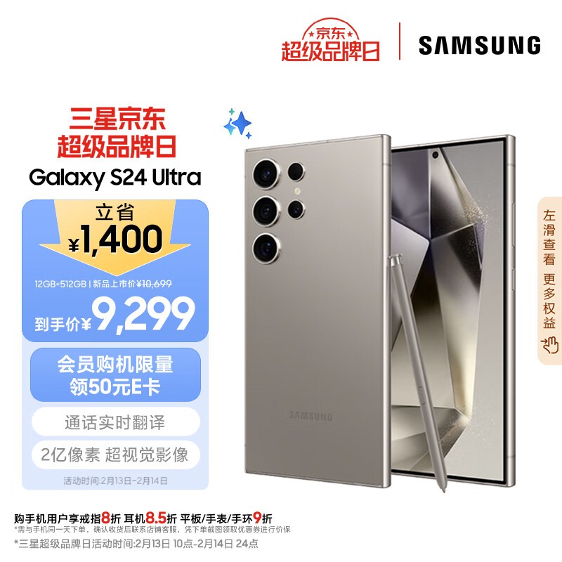 三星SAMSUNG Galaxy S24 Ultra 钛灰版,到手价只需9259元!
