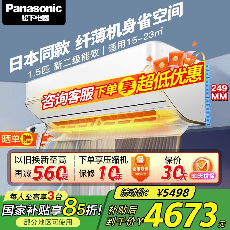 松下 SH13KQ2 壁挂式空调到手价4569元!