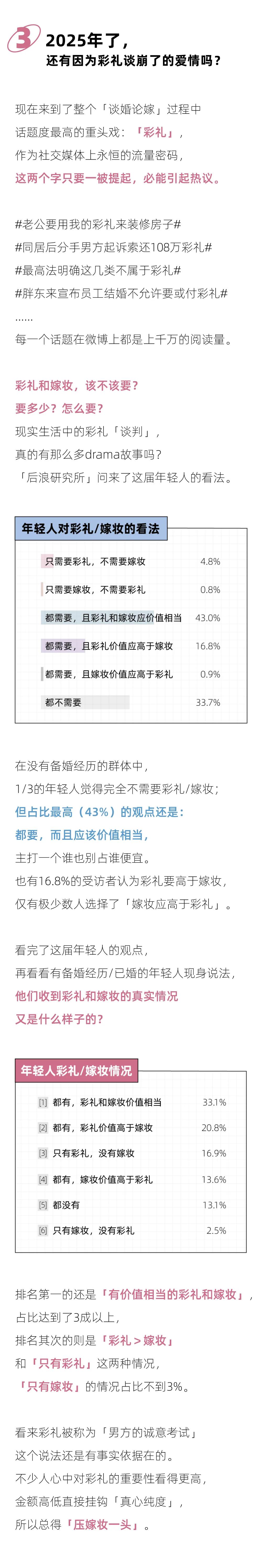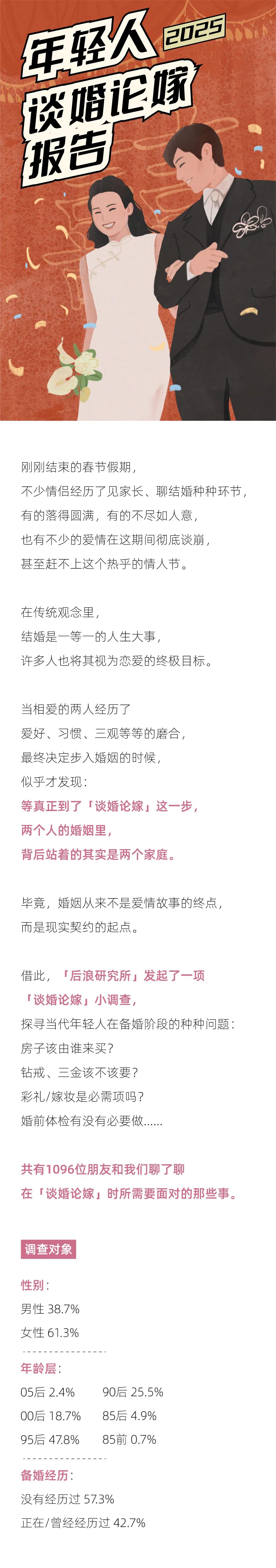 年轻人结婚需要经济基础吗?答案是肯定的。高额彩礼和有车有房是必选项吗?「后浪研究所」问卷数据指向的回答是:并不是。