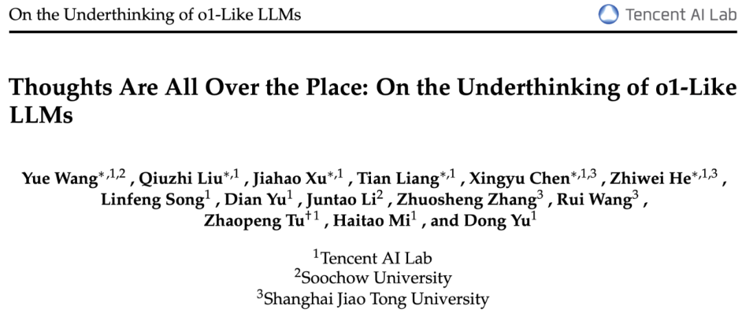 本文将介绍首个关于长推理模型 “思考不足” 现象的工作。该工作由腾讯 AI Lab 与苏州大学、上海交通大学团队共同完成。本文的通讯作者为涂兆鹏,腾讯专家研究员,研究方向为深度学习和大模型,在国际顶级期刊和会议上发表学术论文一百余篇,引用超过 9000 次。担任 SCI 期刊 NeuroComputing 副主编,多次担任 ACL、EMNLP、ICLR 等国际顶级会议领域主席。第一作者为苏州大学博士生王越,腾讯 AI Lab 高级研究员刘秋志、徐嘉豪、梁添,以及上海交通大学博士生陈星宇、何志威。