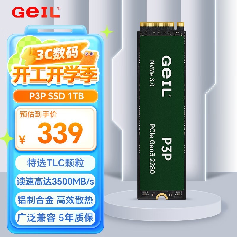 超值抢购!GeIL P3P SSD固态硬盘1TB仅需297元
