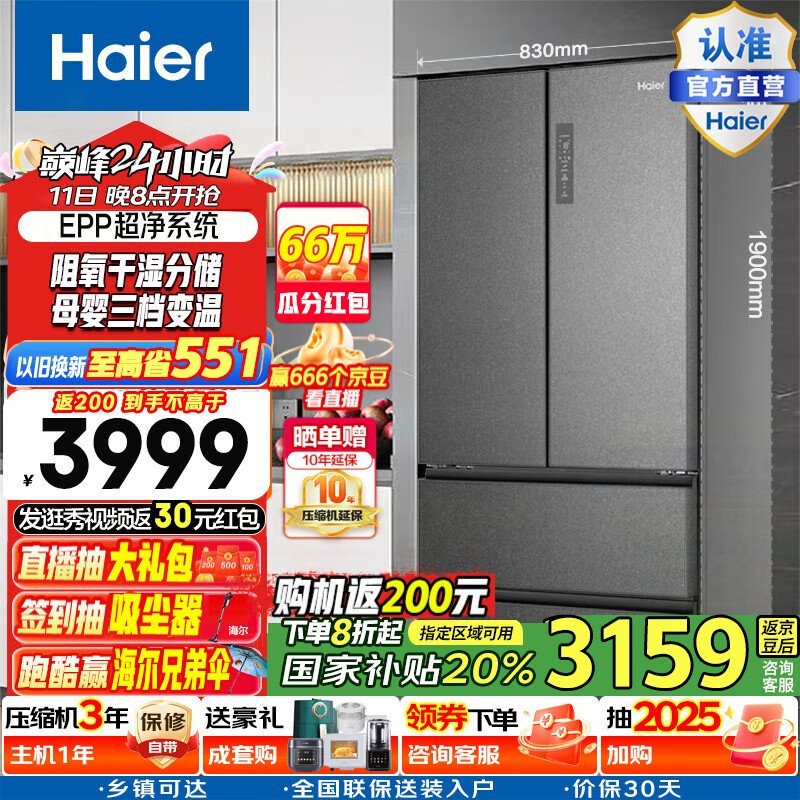 海尔清韵系列冰箱2297元抢购!比原价低了2492元